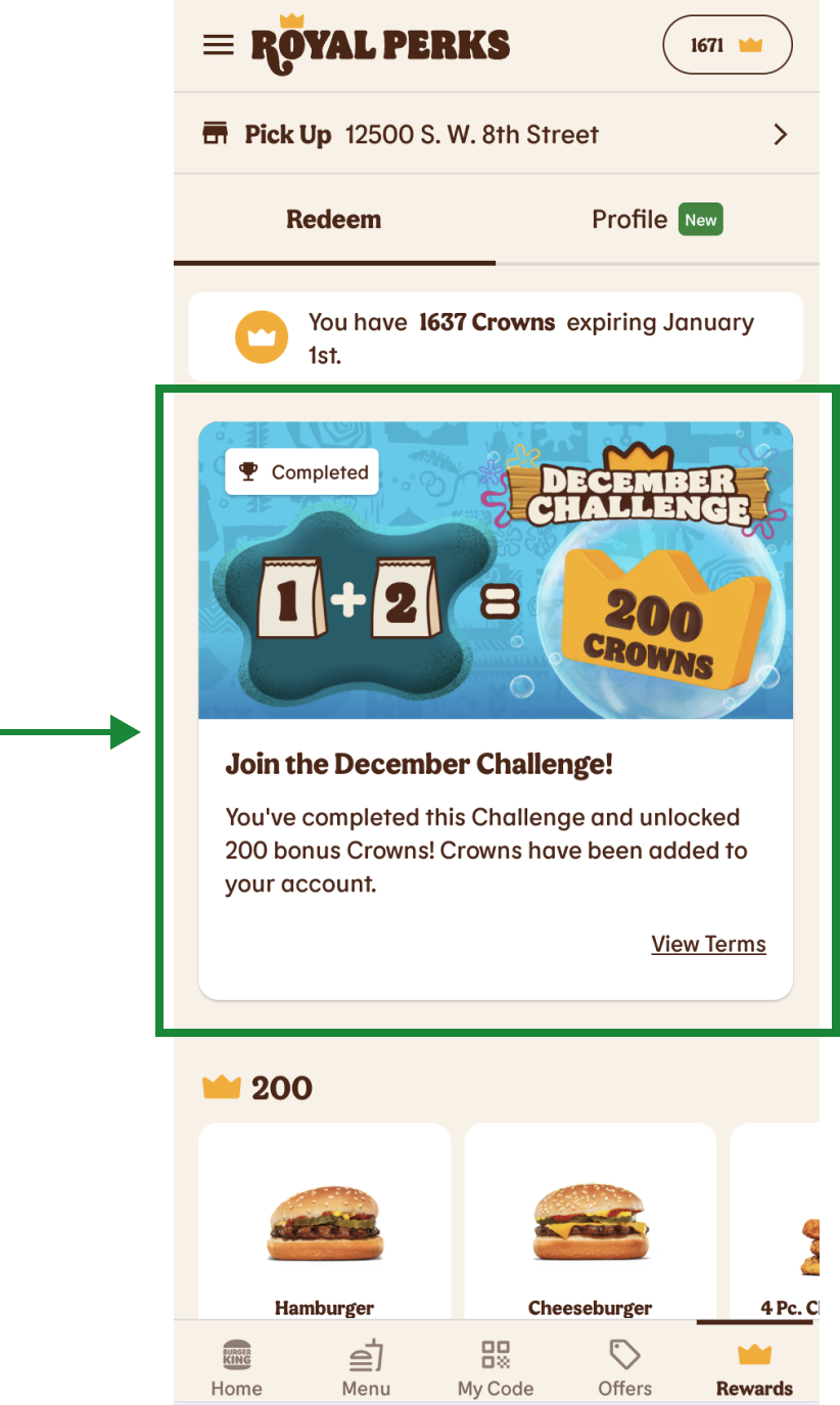 Offers and Challenges in the BK® App or on BK.com are two different ways to save and earn rewards: